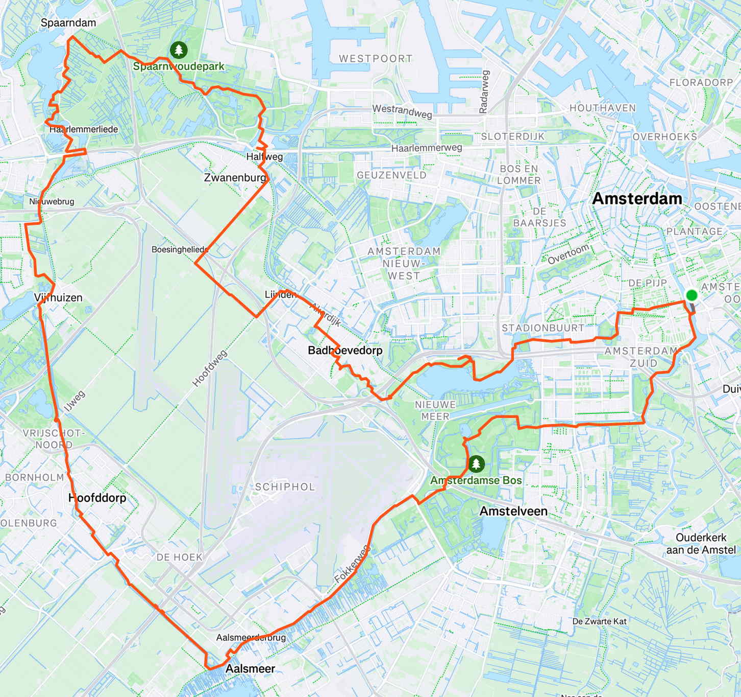Nog eens een mooie herfstdag, tot 14 graden, zon, zuidwestenwind. Veranderde een paar keer van plan wat de route betreft (dat begon al na 700 meter bij het eerste rode stoplicht). Superdruk in het Amsterdamse Bos, dus blij dat ik de westkant had gekozen en niet weer richting Hilversum was getrokken. Spaarnwoude – Liede – Geniedijk – Amsterdamse Bos.