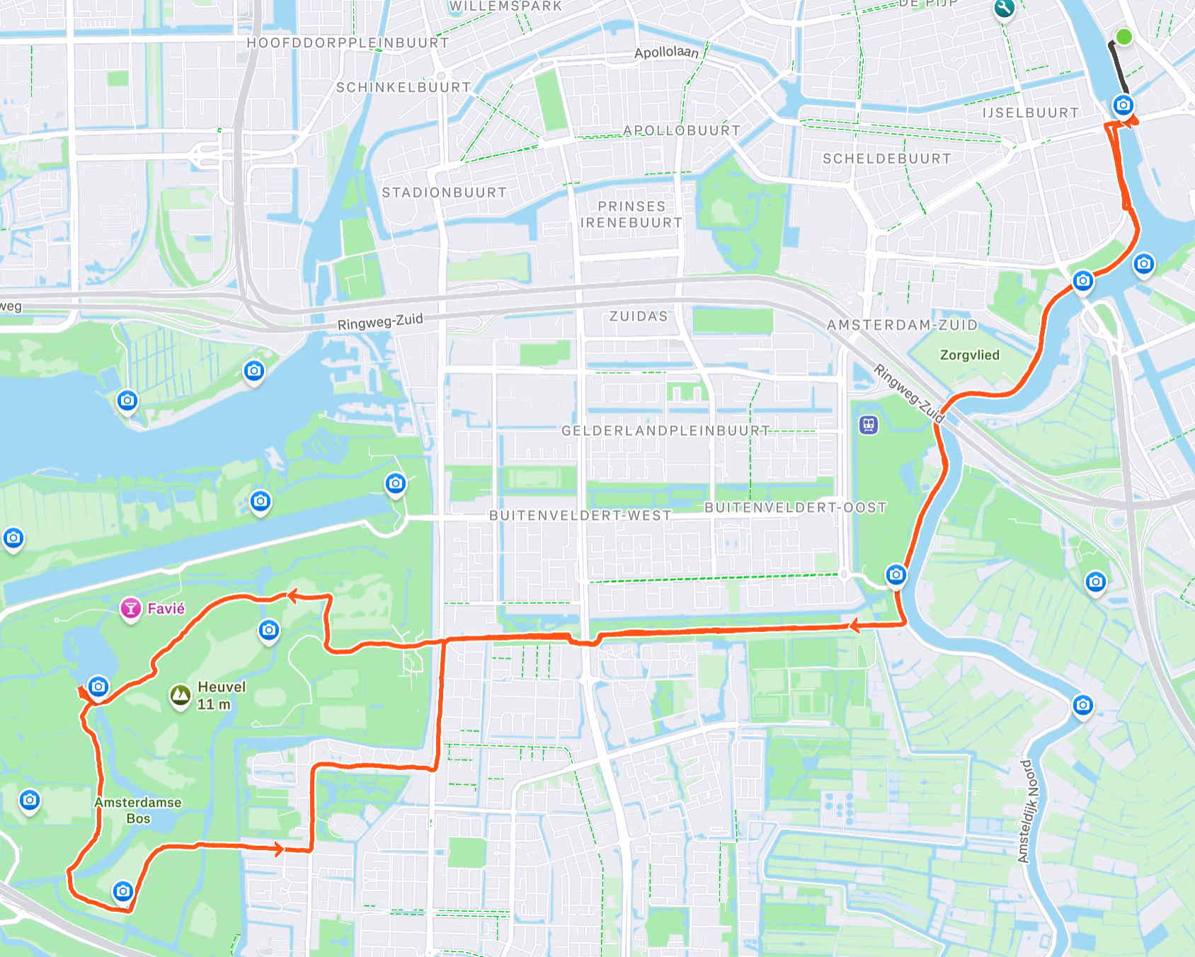 Zondagsrondje. Rustig aan met die voet. Volop zon, wel fris. Beetje door het Bos en door Amstelveen.