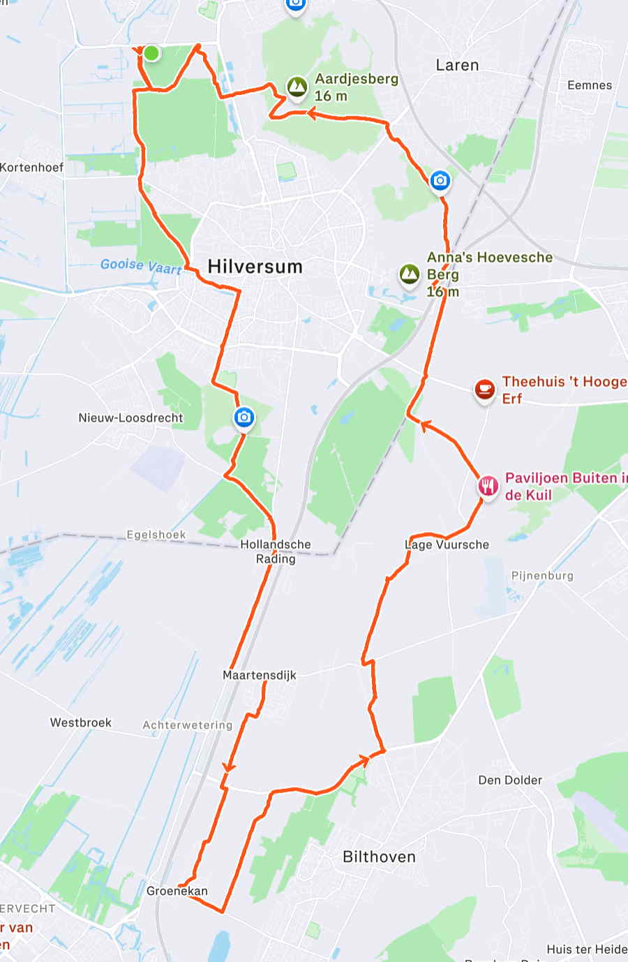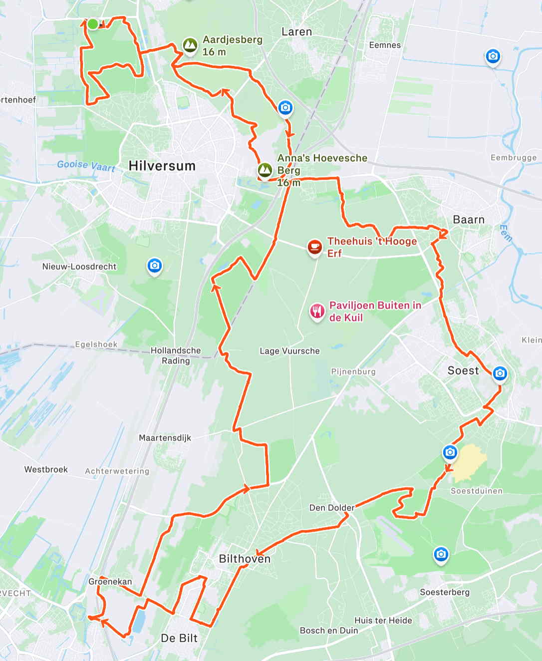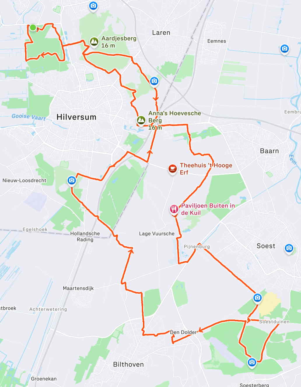 Zaterdag. Beter weer dan verwacht, geen regen, geen bui, in plaats daarvan wel zon door de wolken. Aangename temperatuur, westenwind. Bekende wegen over de Heuvelrug, en wat stukjes die ik niet kende, bij Leersum en Amerongen. Fijne afstand.