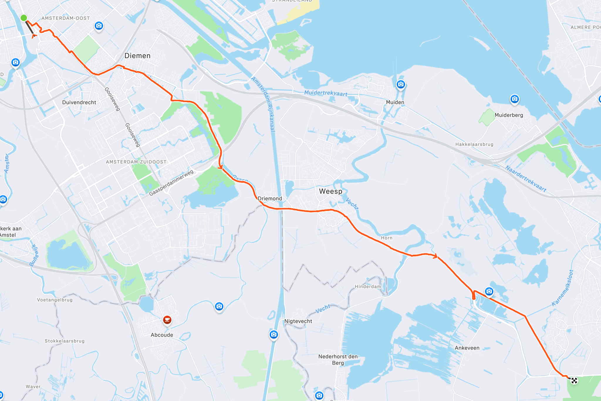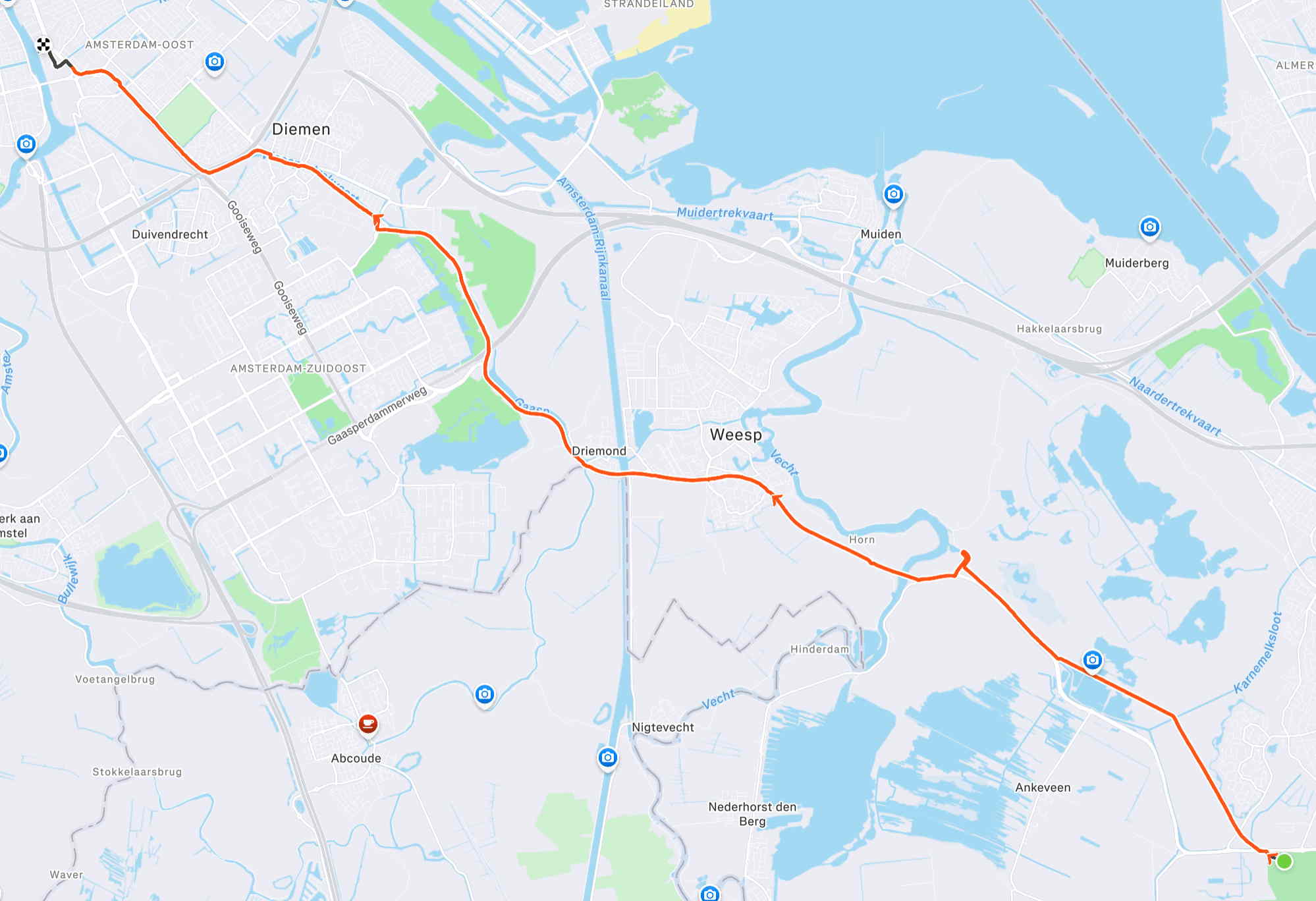 En dan terug (totaal vandaag 115 kilometer). Nog met de zuidoostenwind in de rug, voor het gaat regenen en de wind westelijk wordt.