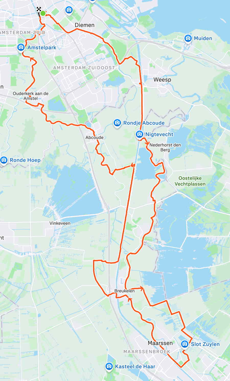 Dat zijn de betere winterritjes. Oké, grijs en de weg is nat en vies, maar weinig wind, 7 graden, en bijna overal lekker rustig. Kanaal en Vecht, tot Zuilen en weer terug.