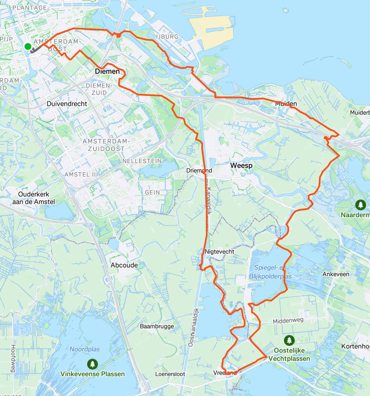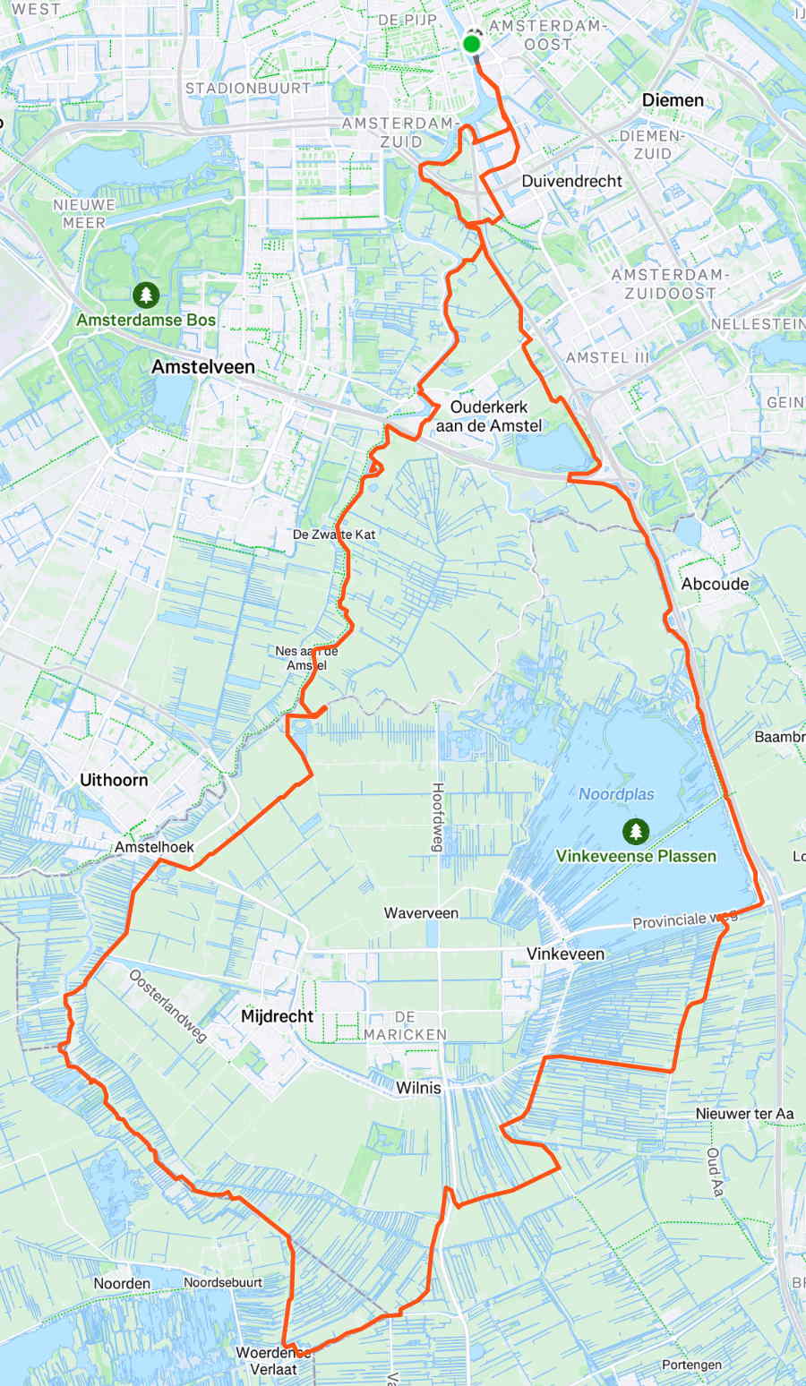 Na veel regen en wind. Einde middag (wintertijd alweer). Fris. Middelpolder, Holendrecht (van de wind af), door de Bijlmer terug (uit de wind), en een extra stukje aan het einde om wel de 30 te halen.
